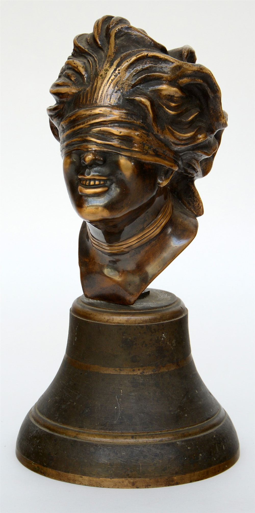 Ignoto "Dea bendata" scultura in bronzo poggiante su base a forma di campana