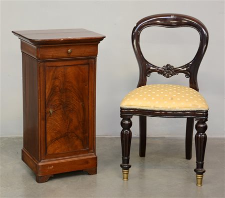 Lotto composto da un comodino e una sedia con schienale a giorno (difetti)