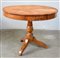 Tavolo tondo con piano lastronato in noce e filettato, cassetto nella fascia,...