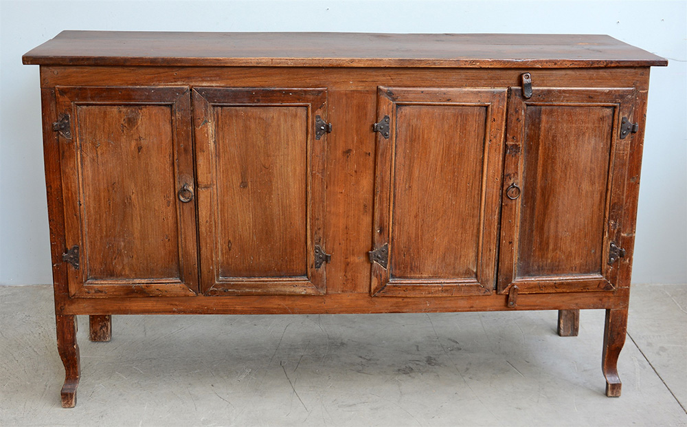 Credenza rustica a quattro ante riquadrate, piedi sagomati (cm 157x94x48)