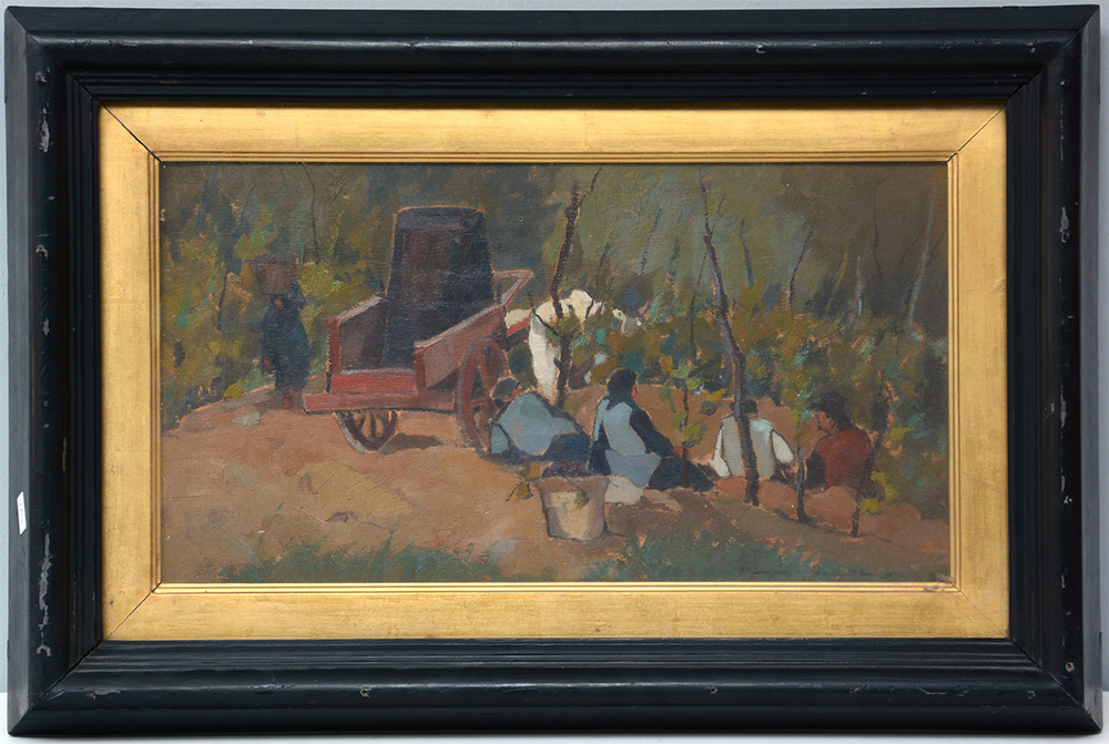 "Vendemmia (Riposo)" 1927, olio su compensato (cm 26,5x48) Firmato e datato in basso a destra. In cornice