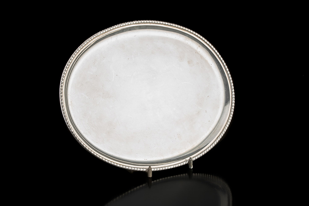 Vassoio ovale in argento con superficie liscia e bordura San Marco. Milano,...
