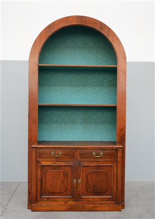 Mobile libreria con parte inferiore a due sportelli, due cassetti e due tiretti sotto il piano, parte superiore centinata a due ripiani; fine sec. XIX inizio sec. XX (cm 123x240x45) (difetti)