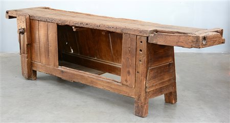 Antico banco da falegname con una morsa (cm 262x79x68) (difetti e restauri)