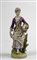 Damina con paniere scultura in porcellana policroma, marcato alla base N e corona, fine XIX sec., cm. h. 22 € 210/310