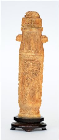 Vasetto di forma arcaica con coperchio base in legno (h. 16 cm.)(difetti) Cina, sec. XX
