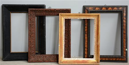 Lotto composto da quattro cornici di misure e materiali diversi (difetti)