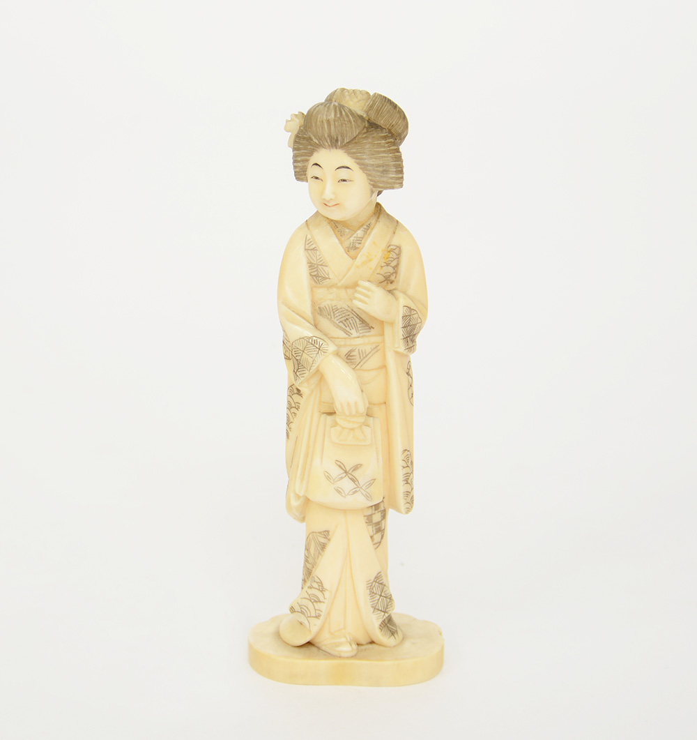 Okimono in avorio raffigurante geisha (difetti e mancanze)