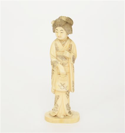 Okimono in avorio raffigurante geisha (difetti e mancanze) Giappone, secolo...