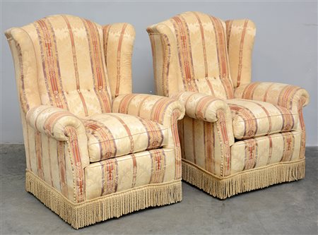 Coppia di bergeres a orecchioni rivestite con tessuto beige (difetti)