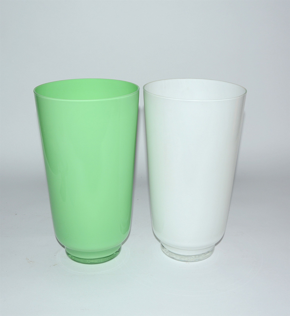 Lotto composto da due vasi a cilindro in vetro opacizzato di color verde e...