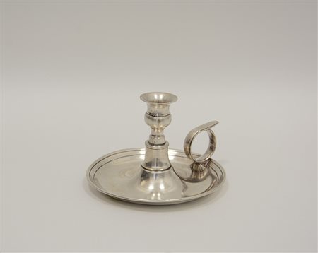 Bugia in argento. Manifattura europea, inizi secolo. XX (d. cm 14) (g 350...