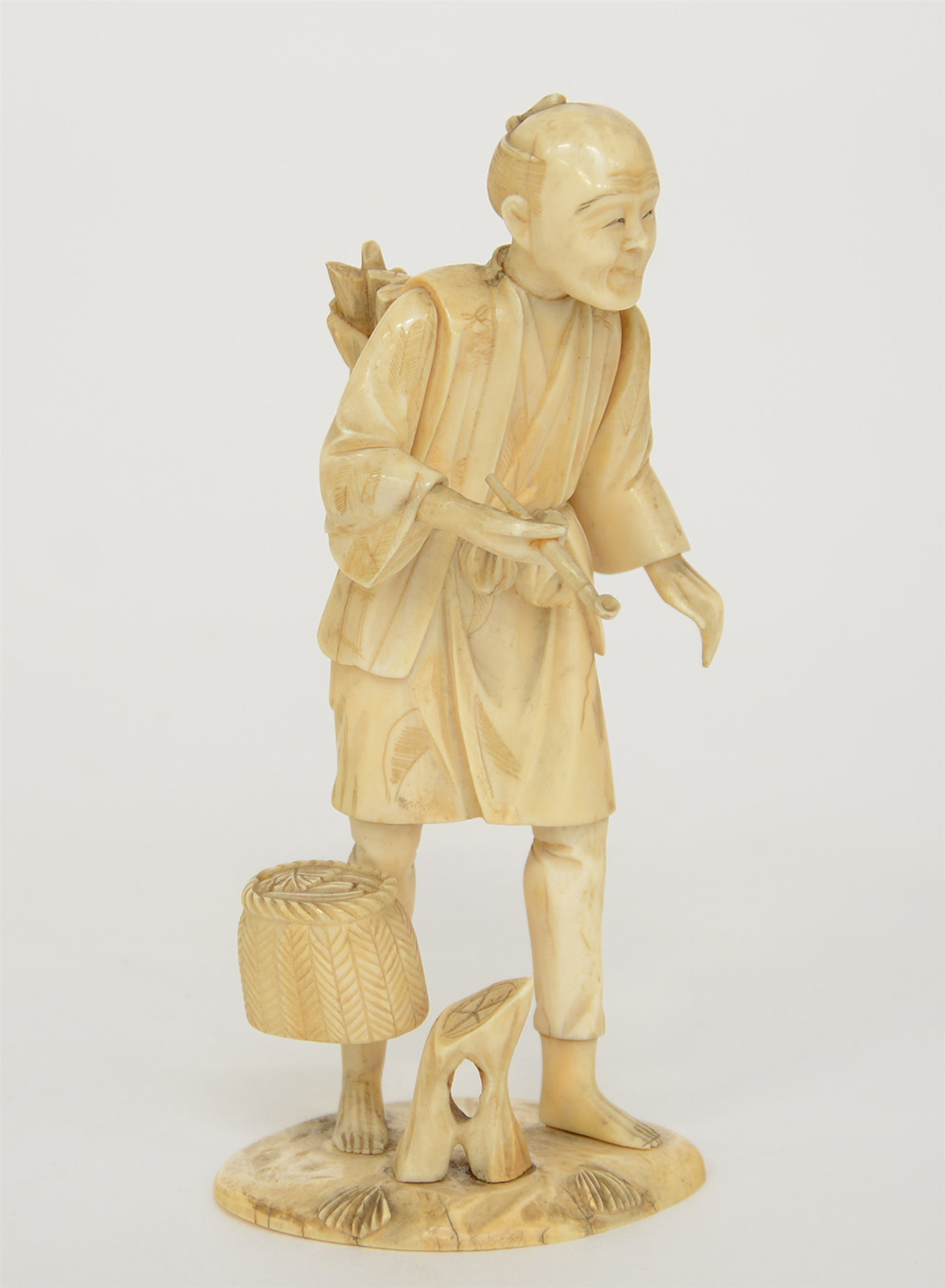 Okimono in avorio raffigurante boscaiolo con fascina (lievi difetti)Giappone,...