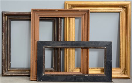 Lotto composto da quattro cornici di misure e materiali diversi (difetti)