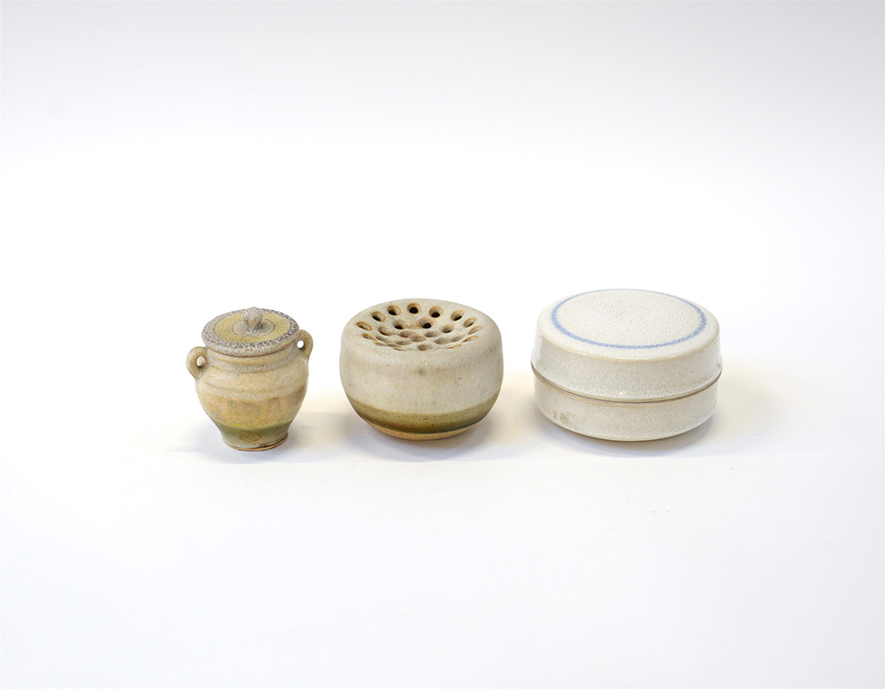Manifatture diverse. Lotto composto da una scatola marcata "Ceramiche Arcore", una piccola anfora di Carlo Zauli biansata marcata "CZ Faenza" e una tulipaniera marcata "Faena". Anni 60/70 (misure diverse) (lievi difetti)