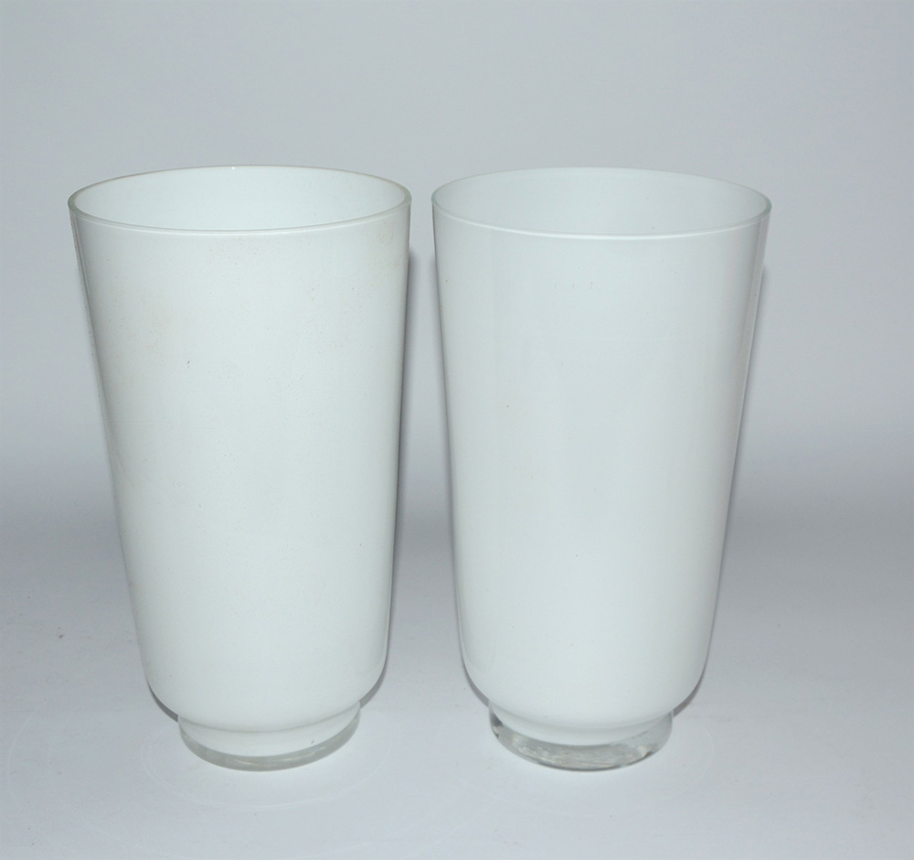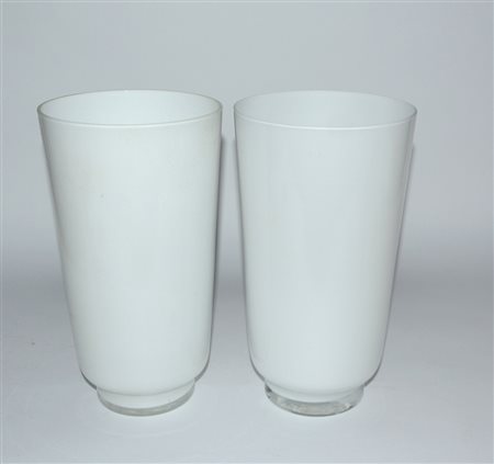Lotto composto da due vasi a cilindro in vetro opacizzato bianco (h cm 30) (lievi difetti)