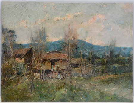 Romolo Leone "Paesaggio con cascina" olio su tavola (cm 34x45) firmato e...