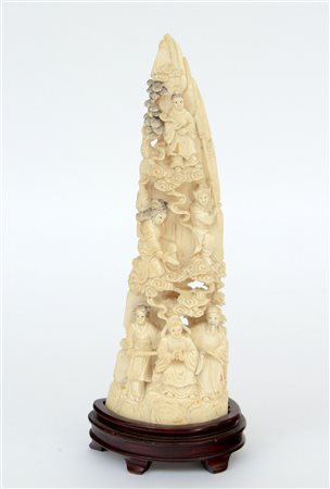 Gruppo scultoreo con figure leggendarie tra nuvole (h. 27 cm.)(difetti) Cina,...