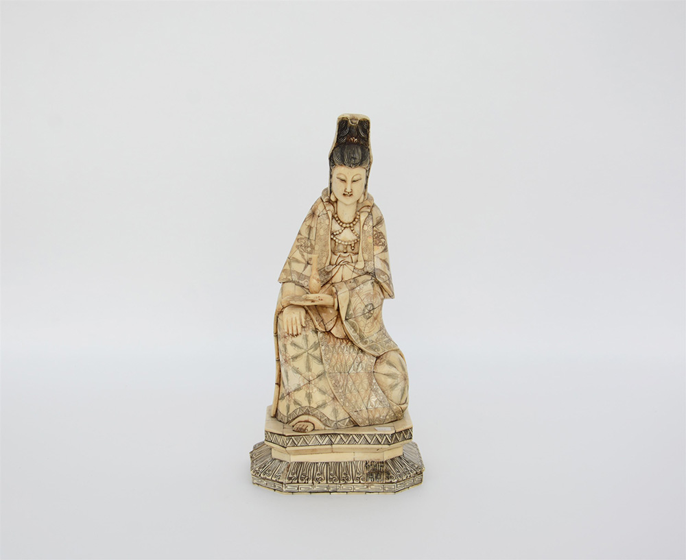 Guanyin in avorio e osso con vasetto in legno, a tasselli (h. 40 cm.) (difetti e restauri) Cina, sec. XX