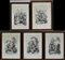 Lotto composto da cinque incisioni (cm 35,5x24,5) in bianco e nero...