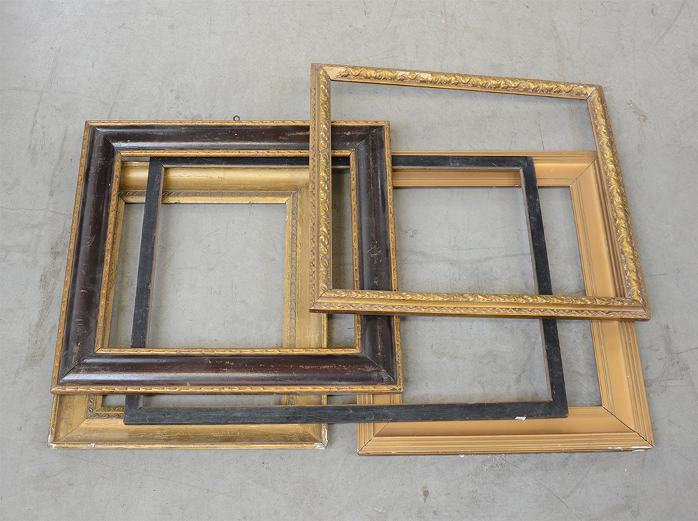 Lotto composto da cinque cornici di misure e materiali diversi (difetti)
