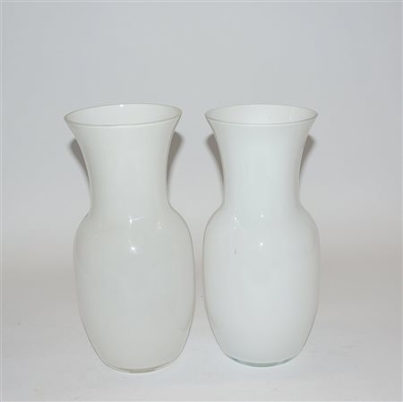 Lotto composto da due vasi a balaustro in vetro opacizzato bianco (h cm 32)