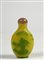 Snuff bottle in vetro giallo, con rilievi a cammeo in verde con figure e tori, Cina. € 100/200