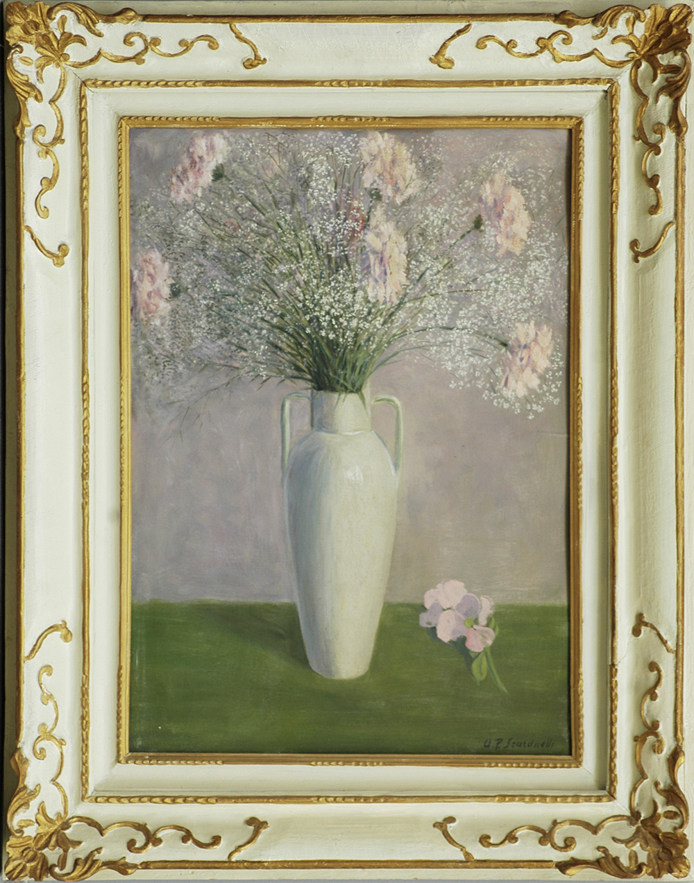 A.P. Scarduelli "Vaso con fiori" olio su compensato (cm 66x50) Firmato in...
