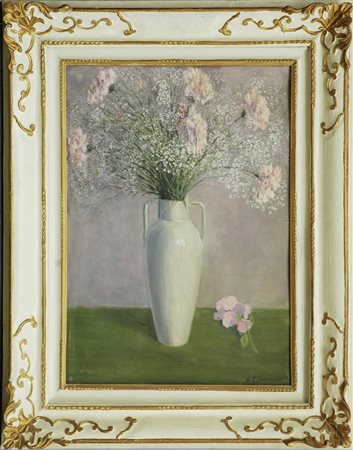 "Vaso con fiori" olio su compensato (cm 66x50) Firmato in basso a destra, in cornice
