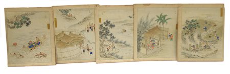 Dieci pagine di album, inchiostro e colore su carta raffiguranti scene di...