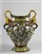 Grande vaso in maiolica dipinta a grottesche, con medaglione e profilo, due anse a forma di animale fantastico, inizi XX sec. € 200/300