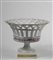 Cestino centrotavola in porcellana bianca traforata, con decorazioni in oro e...