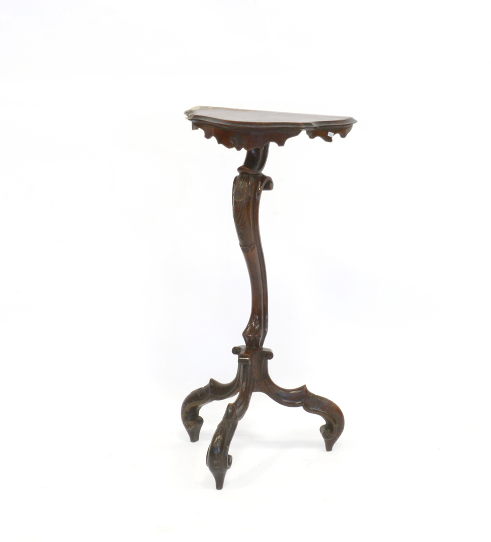 Gueridon in legno intagliato con piano sagomato (cm 45x84x25) (difetti)
