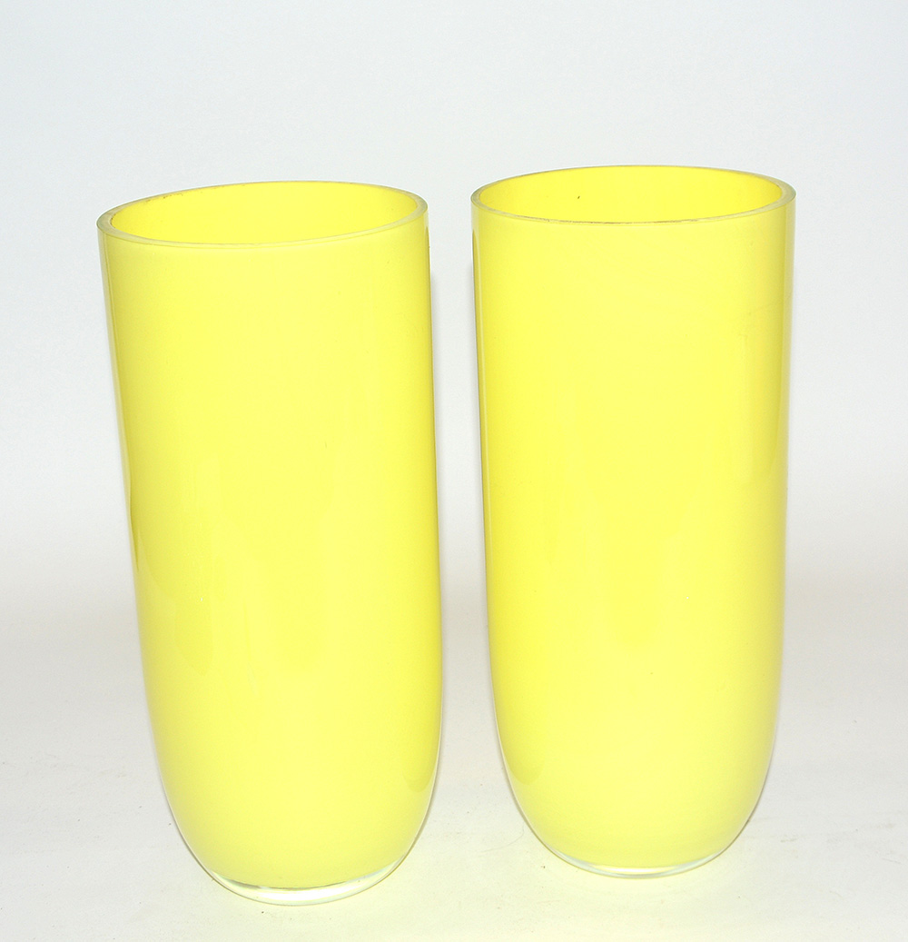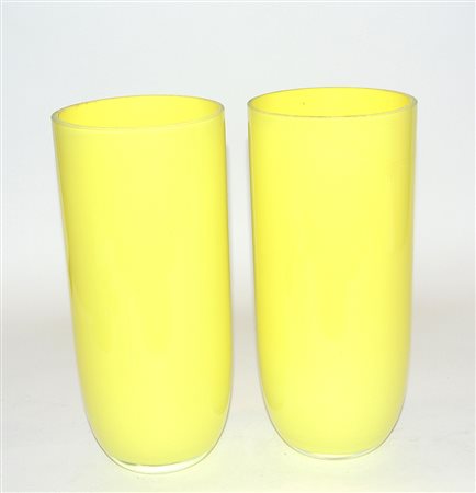 Lotto composto da due vasi a cilindro in vetro opacizzato giallo (h cm 30)