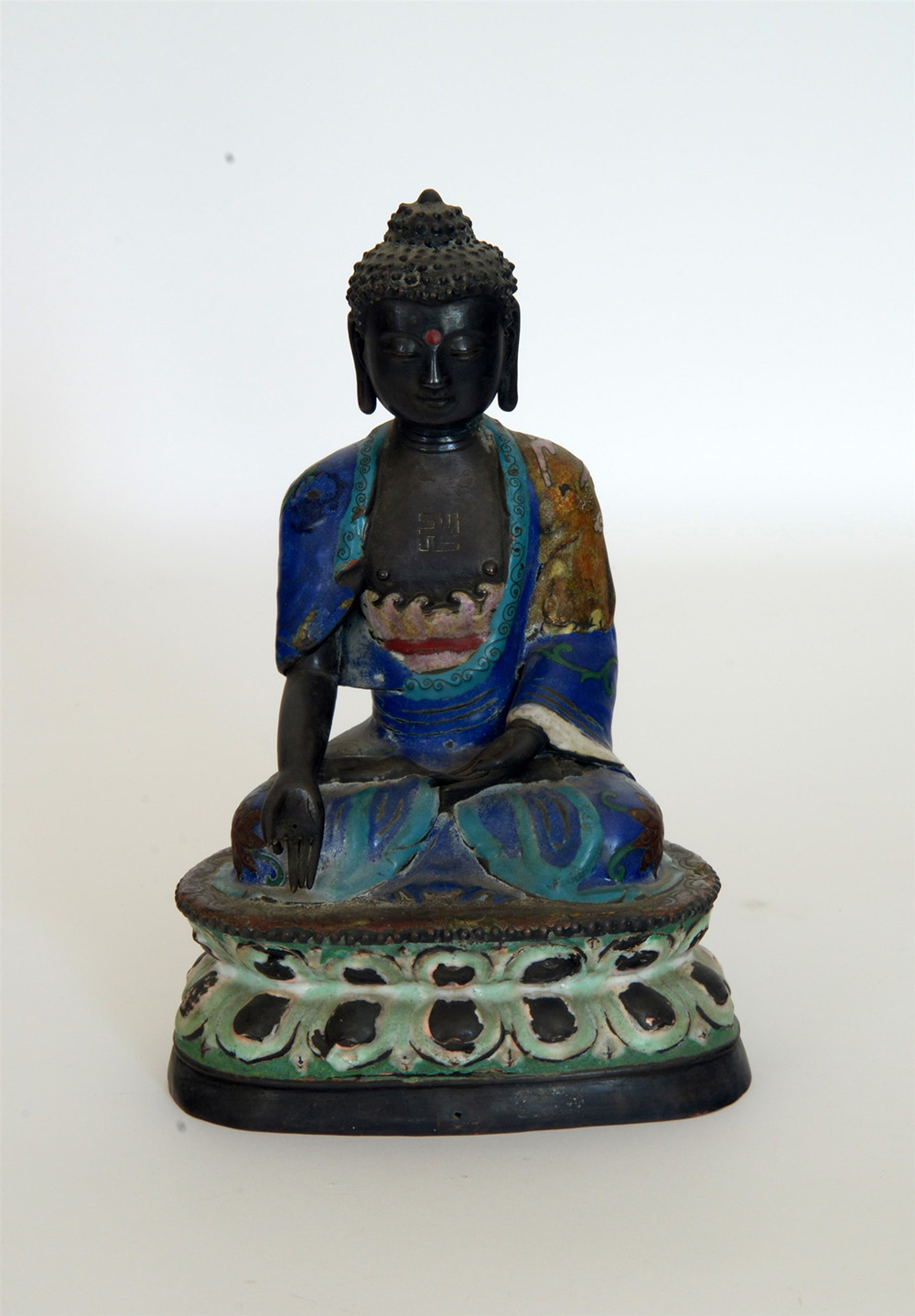 Buddha in metallo smaltato (difetti) Cina, sec. XX (h. 29 cm.)-EN.