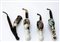 Manifattura tedesca, lotto di quattro pipe con fornelli in ceramica dipinta:...