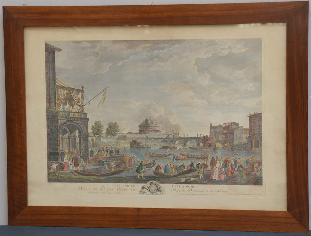 P.J. Duret "Festa sul Tevere a Roma" Incisione a colori da Vernet (cm 61x88)...