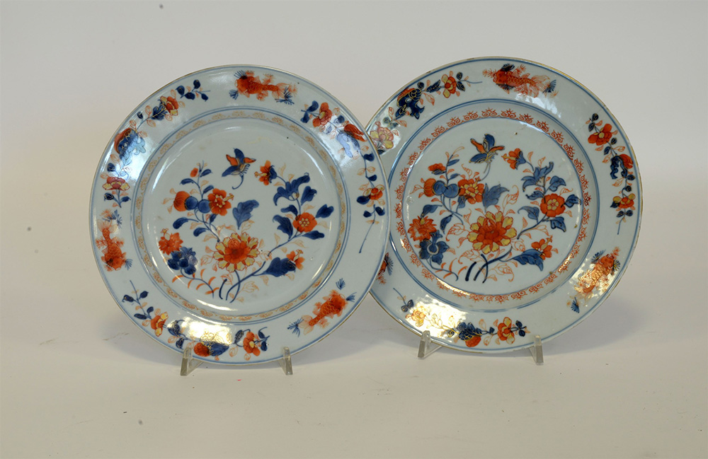 Coppia di piatti Imari a decoro floreale (difetti)Cina, sec. XVIII (d. 23...