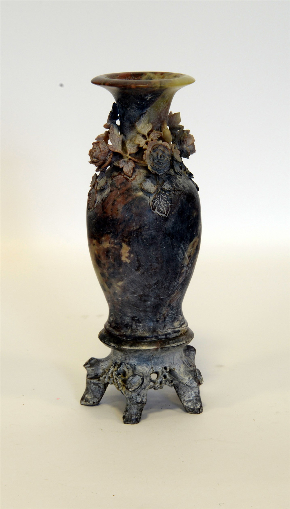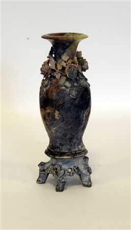 Vaso in stile arcaico in pietra saponaria scolpito con fiori (difetti)Cina,...