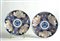 Coppia piatti Imari in porcellana a fondo blu, con decori a paesaggi entro riserve nel cavetto dipinti in ocra, XIX sec. € 200/300