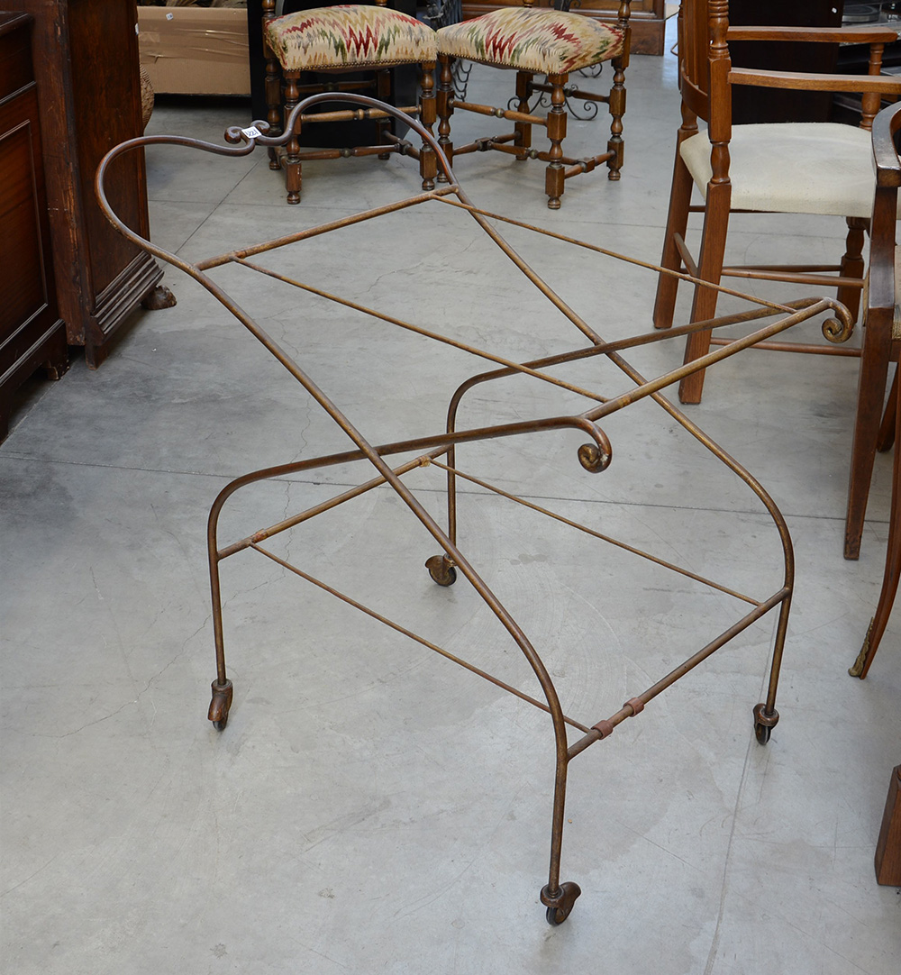 Un carrello portavivande, in metallo curvato e dorato(difetti e mancanze)