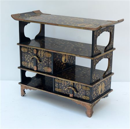 Mobiletto in legno laccato con decorazione dorata a motivi floreali in...