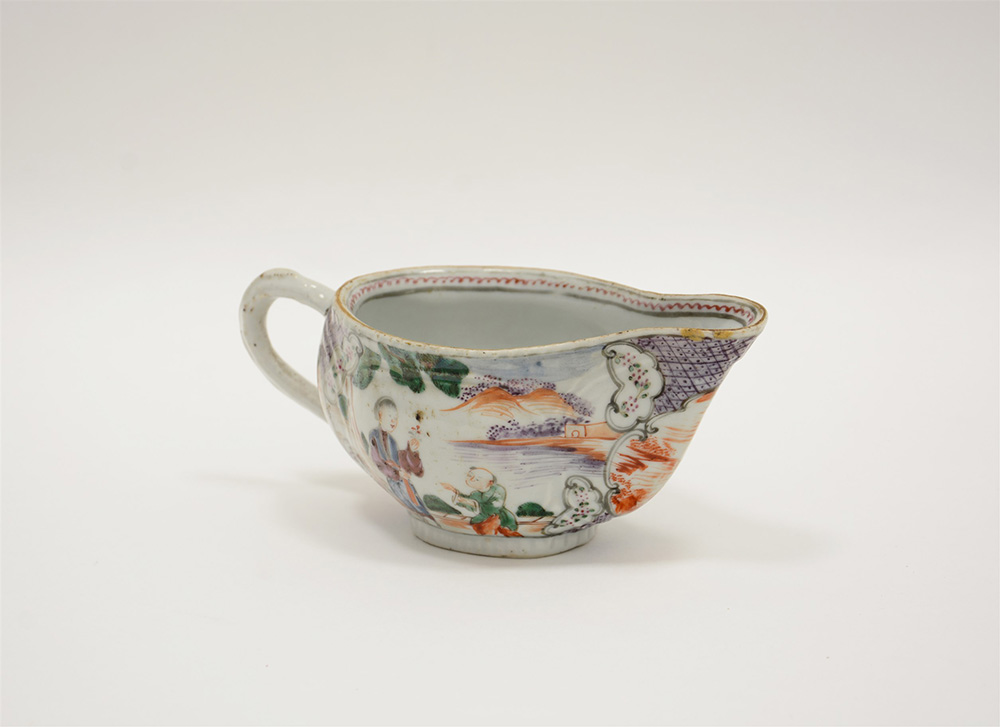 Salsiera in porcellana da esportazione decorata con figure (difetti)