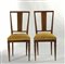 Coppia di sedie in noce schienale a trapezio con cartella filettata, piedi a piramide. € 120/160