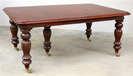 Tavolo rettangolare allungabile, gambe a balaustro tornite e scanalate munite...