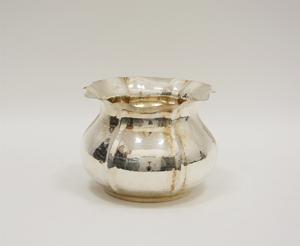 Lotto 2067 | Vaso a bordo sagomato in argento martellato, argentiere Greggio Padova (gr 548)