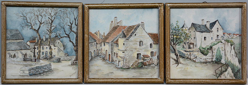 Lotto 2084 | A. Sautard "Scorci con case" tre acquerelli firmati (cm 15x15) In cornice
