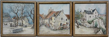 A. Sautard "Scorci con case" tre acquerelli firmati (cm 15x15) In cornice