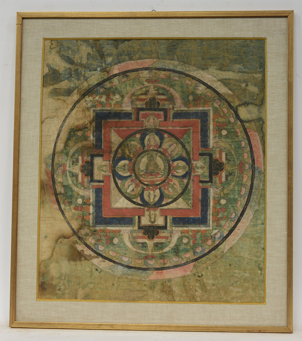 Thangka raffigurante Mandala, inchiostro e colori su tela (difetti)