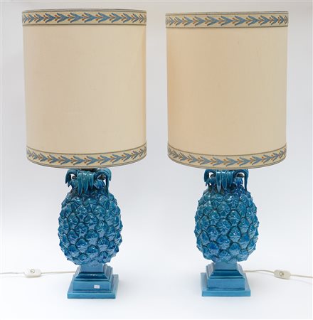 Coppia di abat-jour con base in ceramica azzurra a forma di ananas (h cm 85)